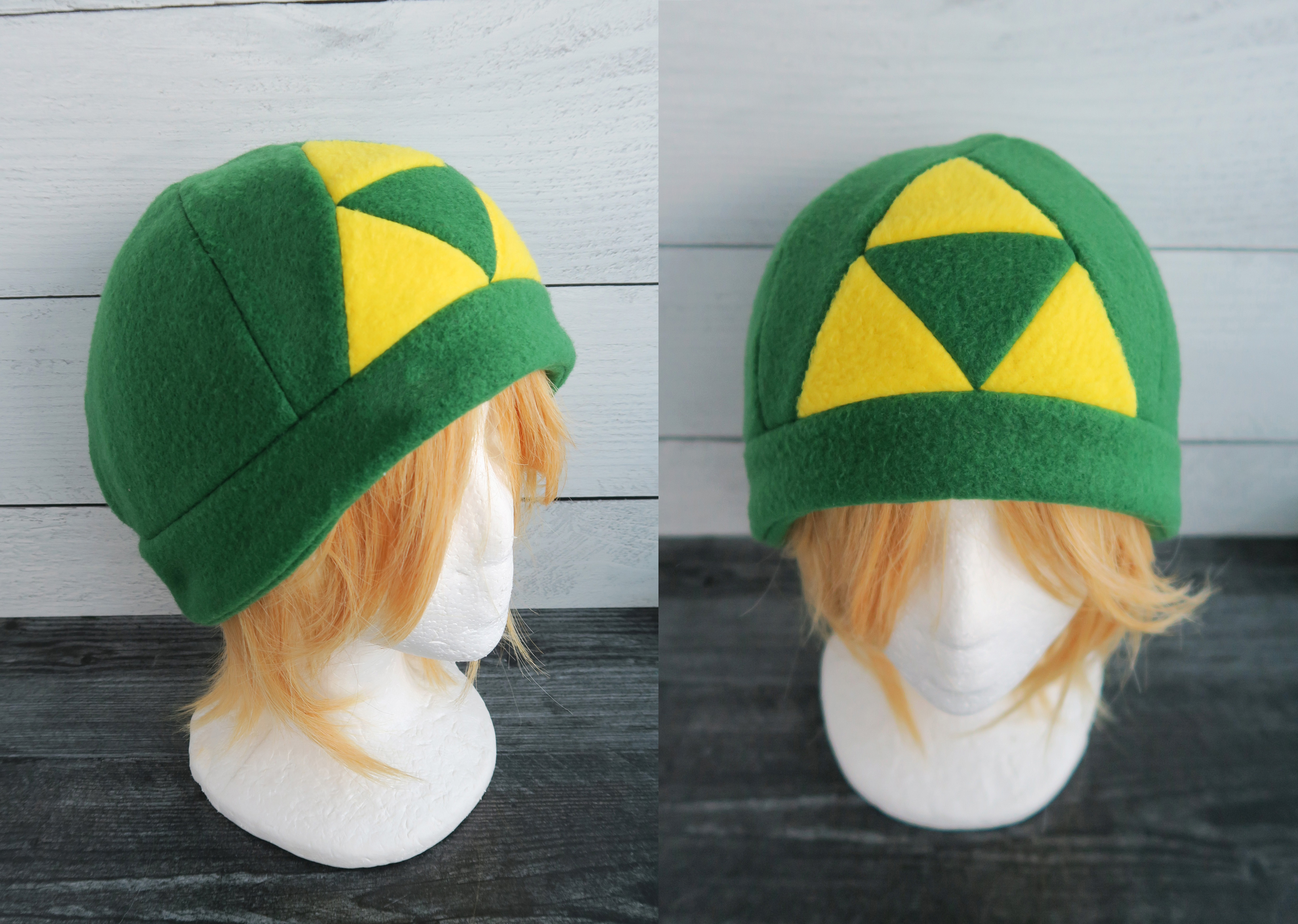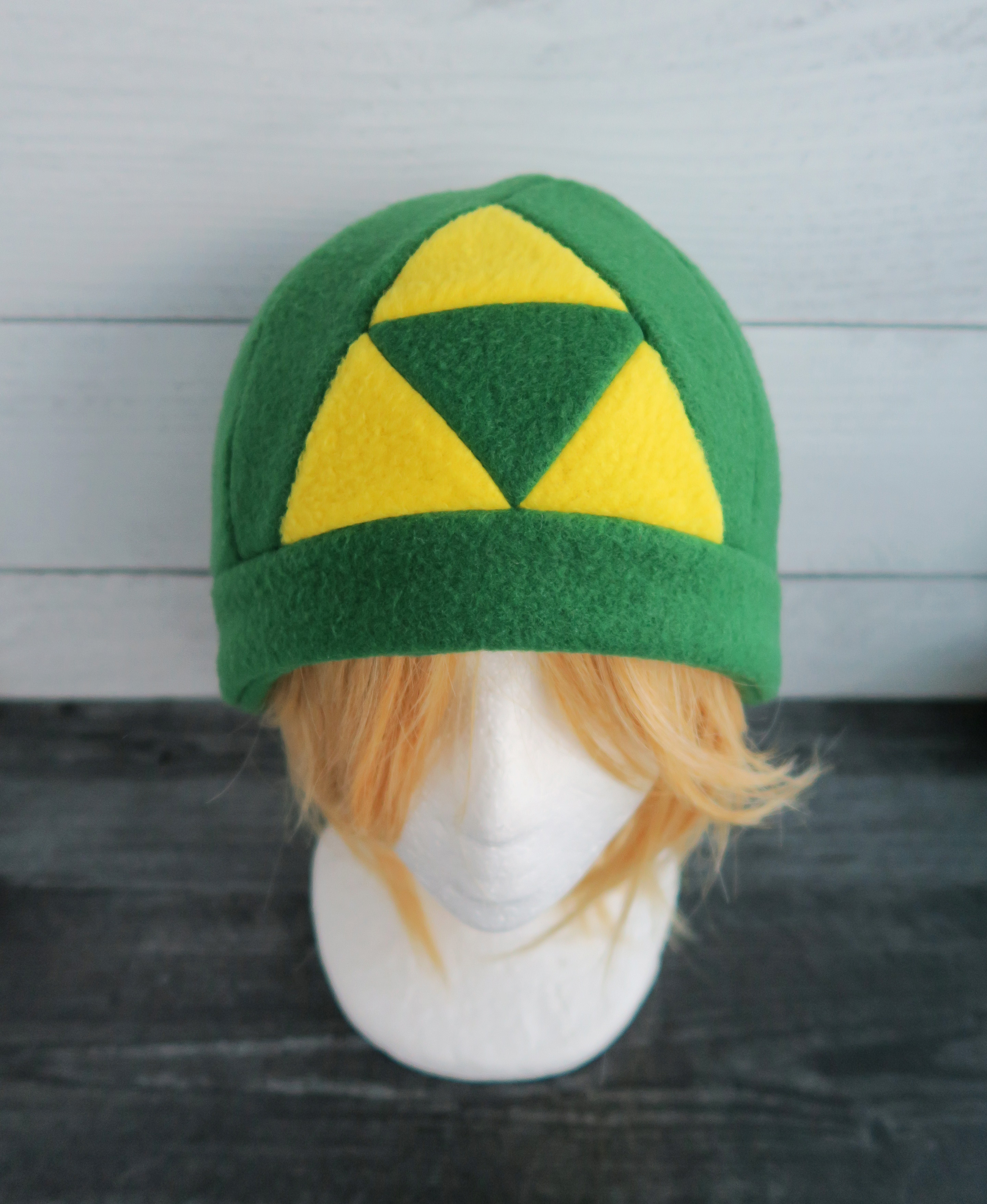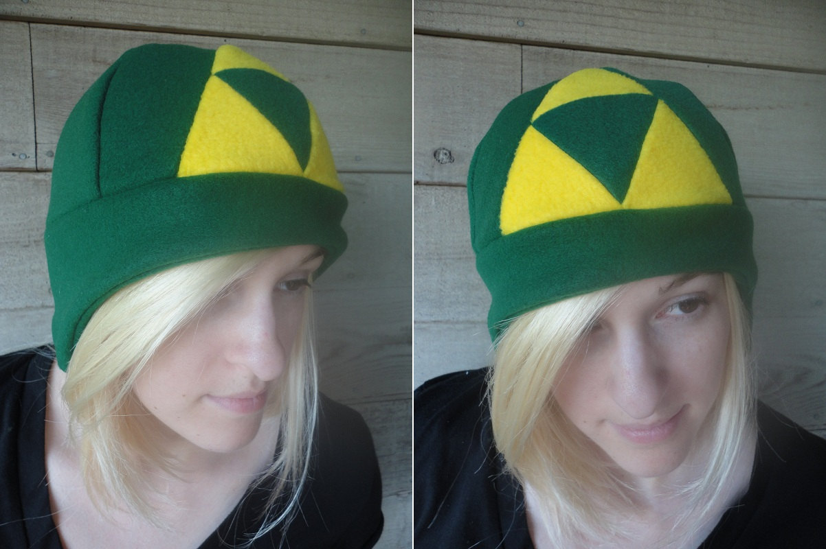 This Triforce hat is made from fleece.